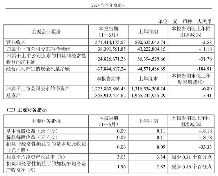 8月15日晚间,舒华体育(605299.SH)发布公告,2024年上半年公司实现营业收入5.71亿元,同比减少3.58%。归属于上市公司股东的净利润为3839.16万元,同比减少11.18%。扣除非经常性损益的净利润为2482.67万元,同比减少31.78%。基本每股收益0.09元,同比减少18.18%。