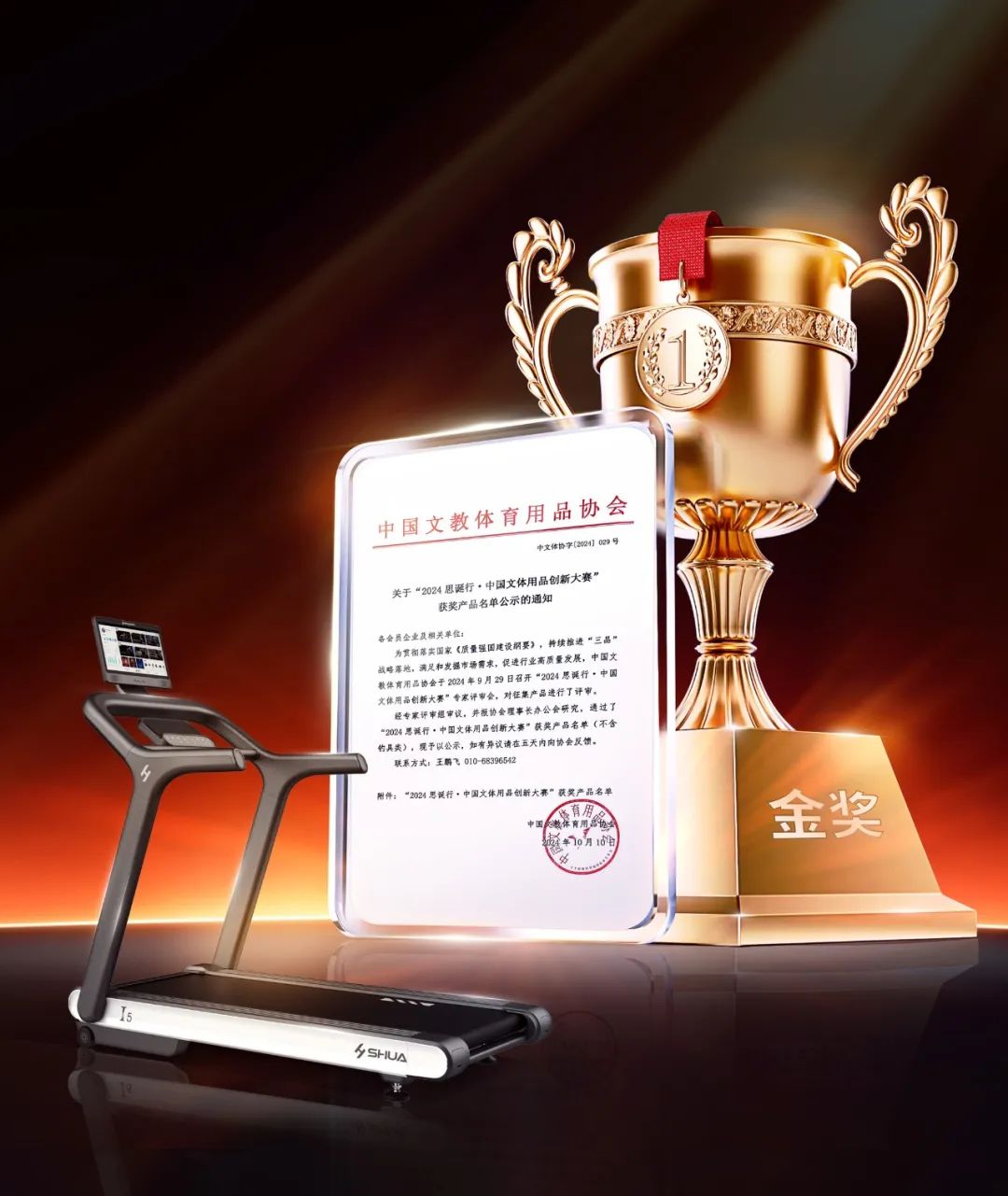 10月10日,在由中国文教体育用品协会举办的“2024思诞行·中国文体用品创新大赛”中,舒华体育推出的I5智能跑步机凭借其卓越的创新设计和科学运动功能,成功荣获金奖。