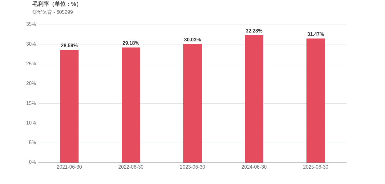 在2025年上半年,舒华体育的经营业绩呈现营收增长但利润下滑的态势,实现营业收入6.14亿元,同比增长7.52%,但归母净利润仅为0.20亿元,同比下滑47.44%。引人关注的是,净利率、毛利率和净资产收益率三大盈利指标均出现下降。