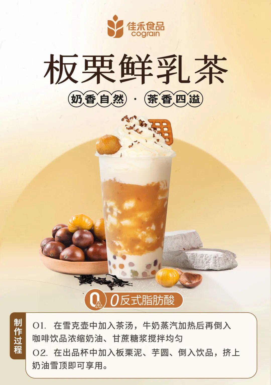 在小料的选择上,板栗、芋泥、麻薯、芋圆、红豆、阿华田可可酱、黑芝麻酱、梨肉等一系列具有口感上厚实、风味上偏甜蜜的传统食物元素则更契合秋冬主题。