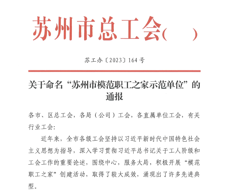 为充分发挥先进典型的示范引领作用,激励全市各级工会组织更加竭诚服务职工群众,进一步增强广大职工群众的安全感、获得感和幸福感。近日,苏州市总工会命名50个单位“苏州市模范职工之家示范单位”称号,佳禾食品工会成功入选。