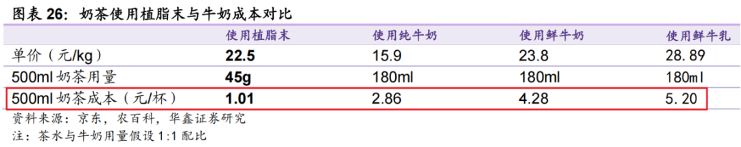 植脂末成本占优,为中低端奶茶优选配料,这跟公司的茶饮客户结构基本吻合。