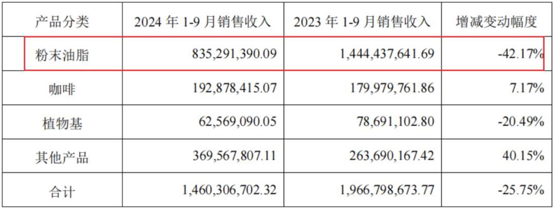其中,粉末油脂营收同比下滑42.2%,接近腰斩。