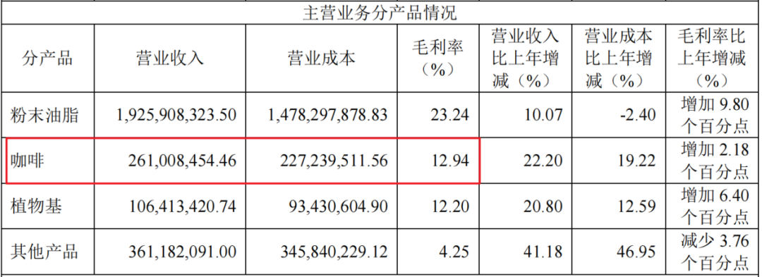 由于下游客户采购规模较大,议价能力较强,同时终端市场竞争激烈,供应链内卷严重,公司咖啡业务毛利率整体处在较低水平。
