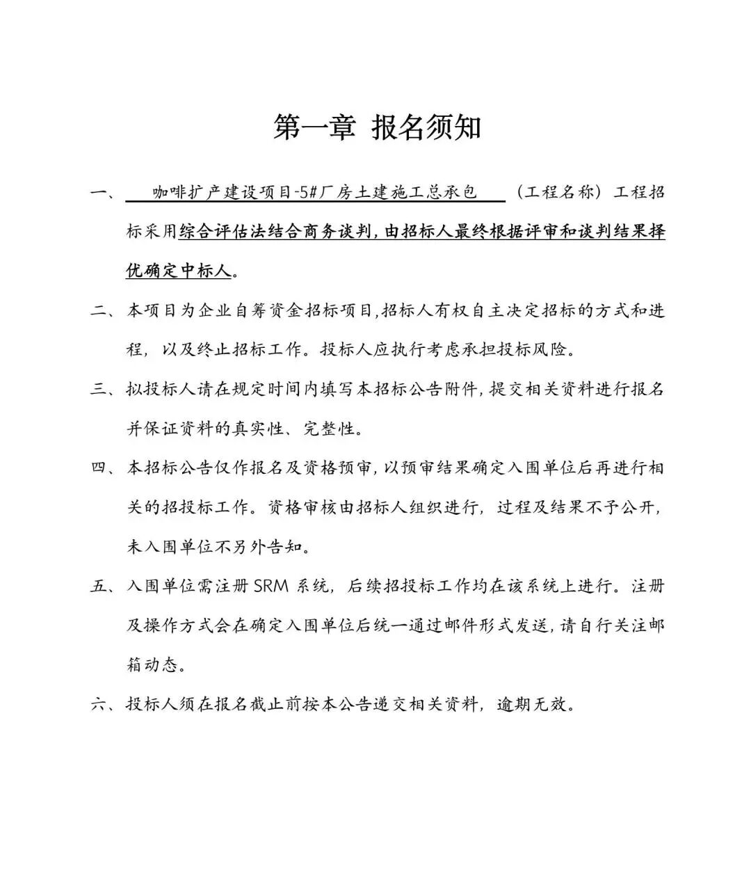 佳禾食品《咖啡扩产建设项目5#厂房土建施工总承包》招标公告