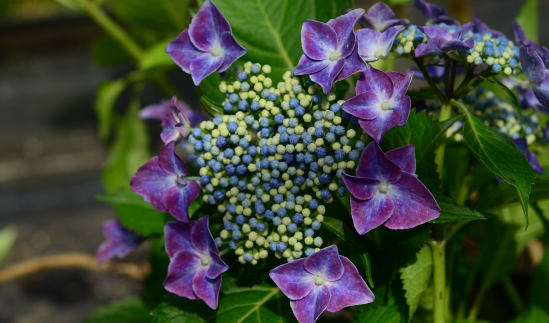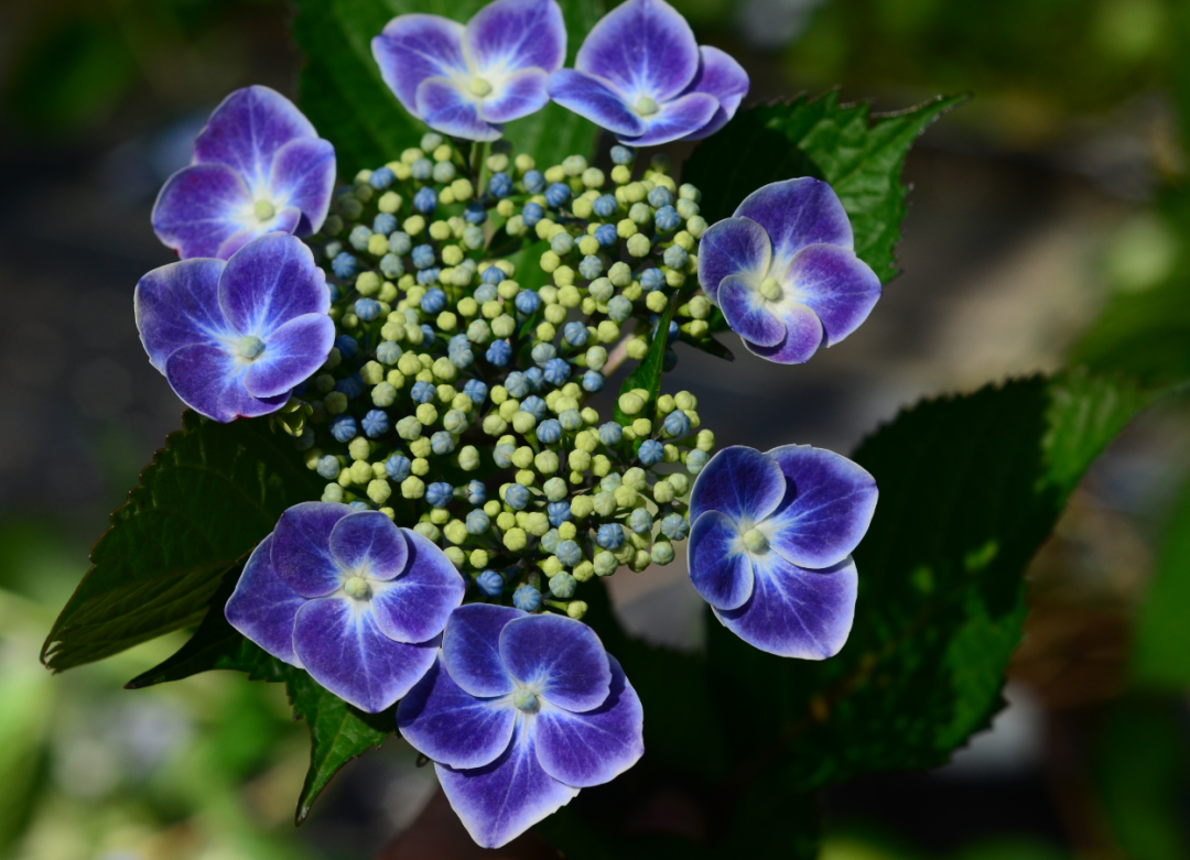可孕花花瓣蓝色;不孕花萼片先端白色至浅蓝色中部蓝色至紫色基部白色;花色梦幻,花型飘逸,适合家庭园艺和工程。