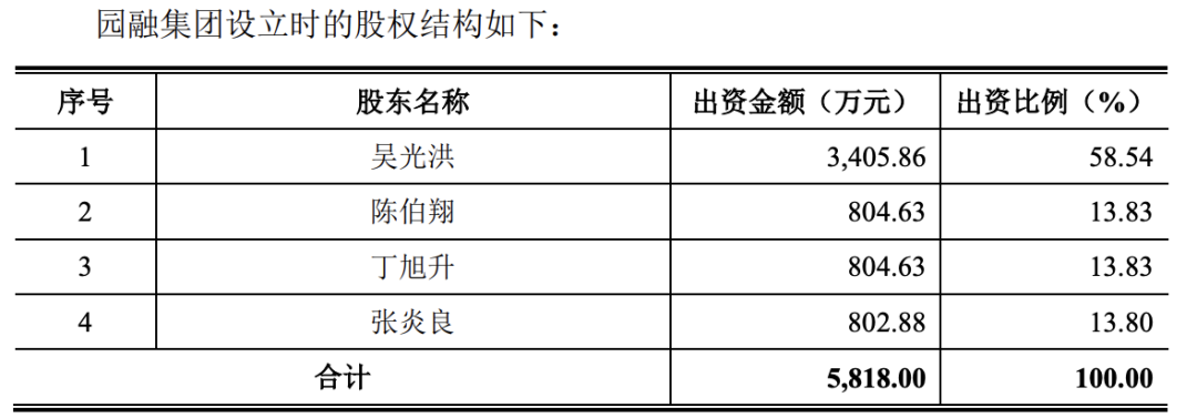 2003年1月,吴光洪、丁旭升、陈伯翔、张炎良4人出资400万元设立园林有限,此后进行过多达7次增资。