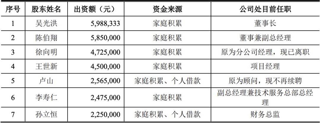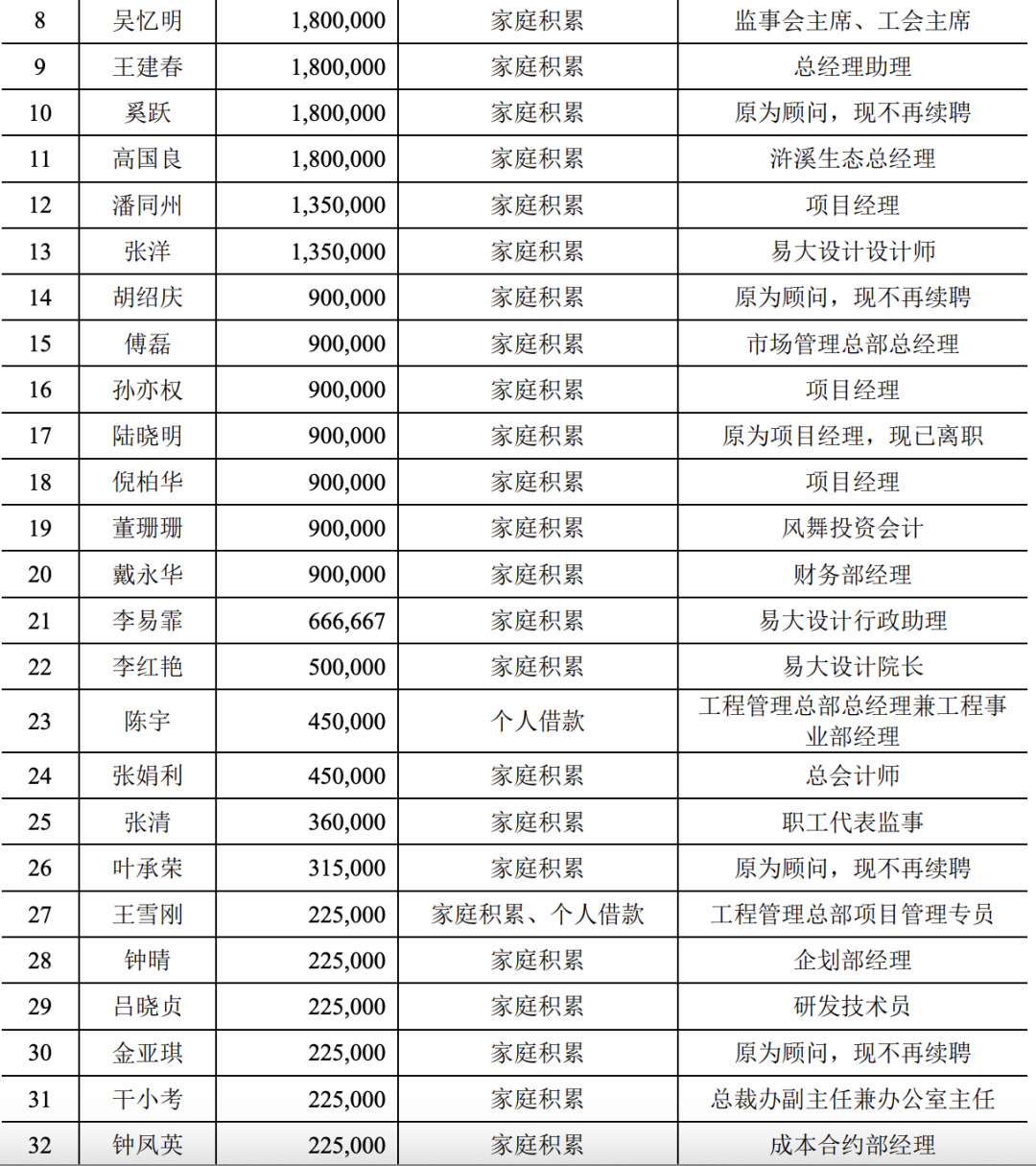 2012年,39位员工参与的持股平台风舞投资以4.50元/股出资额,对公司投资4,950万元。