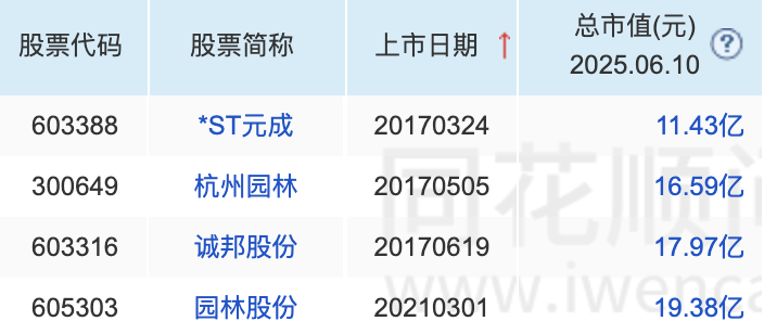 在元成股份、杭州园林、诚邦股份连续上市4年之后,2021年3月,园林股份终于挤上末班车,杭州4家园林公司顺利会师A股(赛石园林此前已注入美晨科技)。