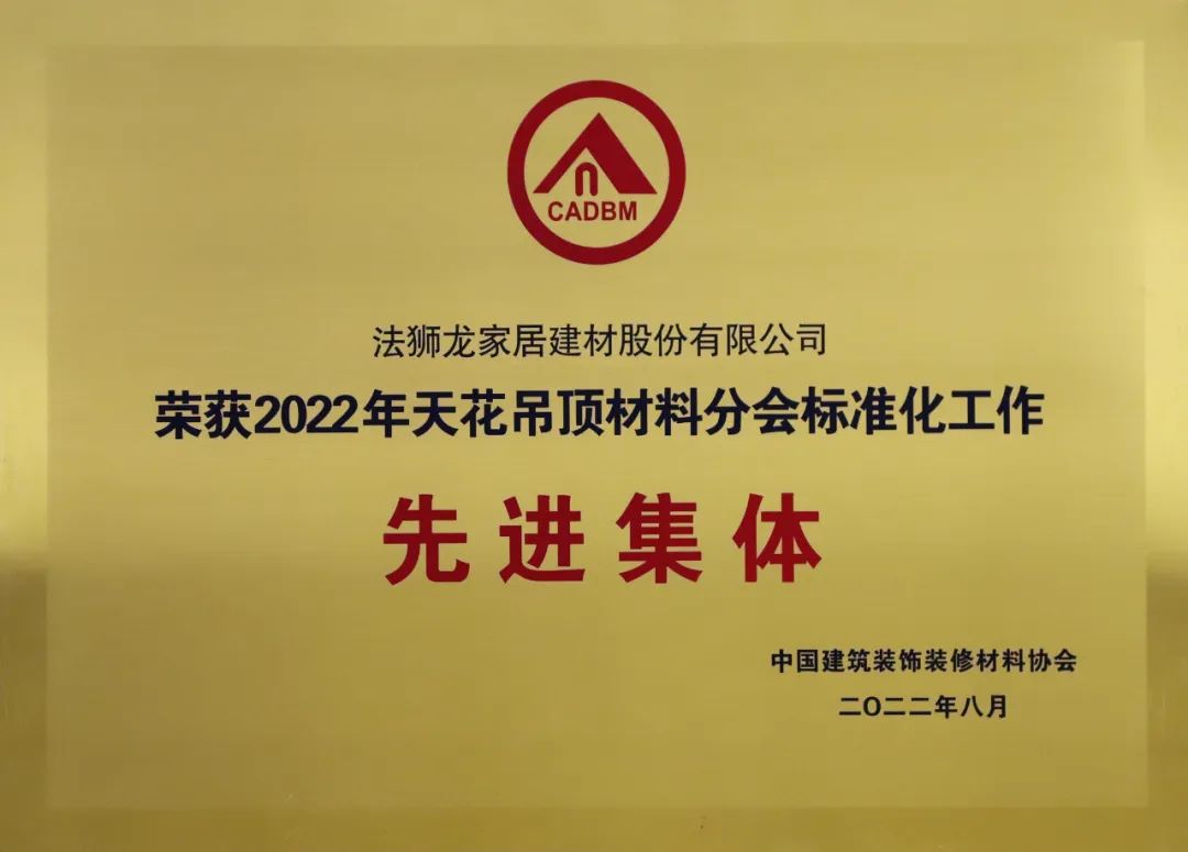 在此次2022顶墙文化节上,法狮龙荣获三大奖项:“2022年全国绿色建材下乡活动推广企业”、“2022年度天花吊顶材料分会标准化工作先进集体”、“装配式内装应用示范单位”