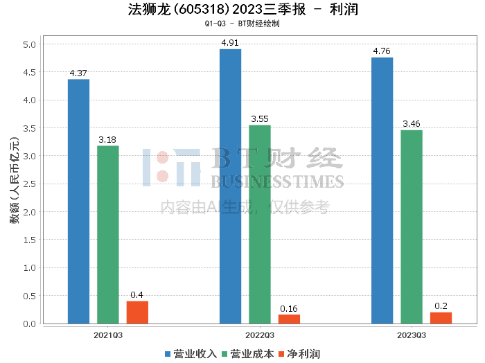 综上所述,法狮龙在2023年三季度整体经营状况稳健,尽管面临营业收入的轻微下滑,但通过有效的成本控制和经营效率提升,实现了利润的显著增长。资产负债结构的改善也为公司的长期发展提供了坚实的财务基础。