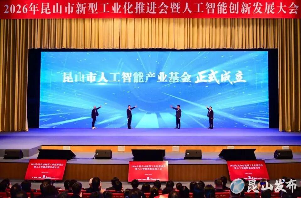 会上,昆山发布了《推进新型工业化暨人工智能创新发展2026年行动方案》,提出以“三个再改造”为核心路径,推动传统终端产品、企业生产流程、算力基础设施智能化升级。现场发布了智能终端与AI服务器产业全景图、优化营商环境新举措,成立了昆山人工智能产业联盟,并设立专项产业基金,基金总规模达50亿元,首期规模20亿元。
