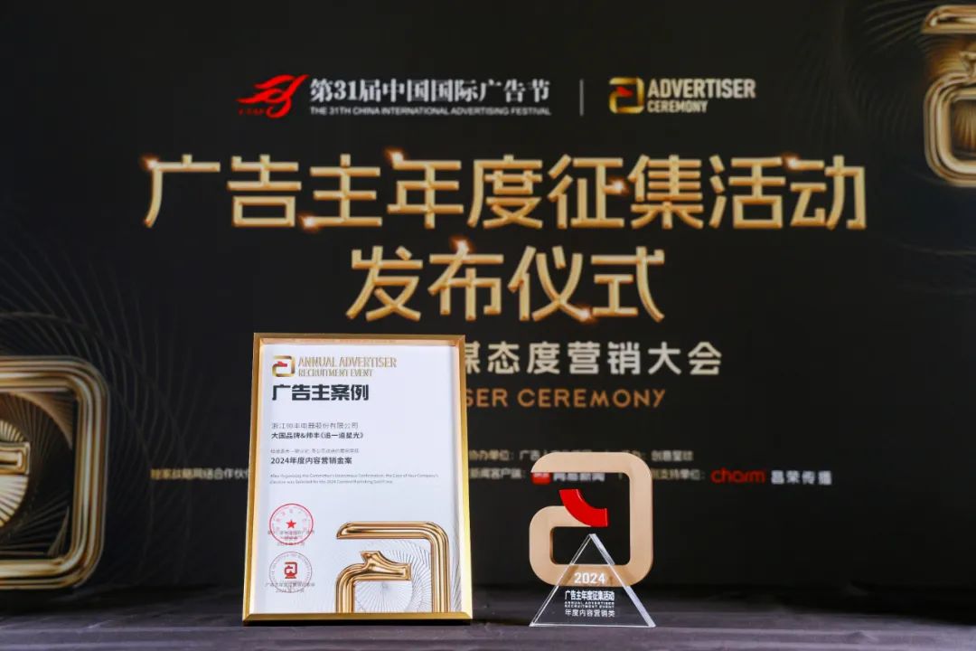 2024年11月27日至30日,第31届中国国际广告节在厦门隆重举行,作为中国广告界规模最大、影响最广的年度盛事,广告节聚焦新质生产力、创新融合与高质量发展,进一步推动广告行业转型升级。在本届广告节上,帅丰电器与《大国品牌》联合打造的品牌故事片《追一道星光》斩获2024年度内容营销金案,这彰显了帅丰电器在品牌营销方面的卓越实力,同时充分肯定了其在创新能力和专业水平上的行业领先地位。
