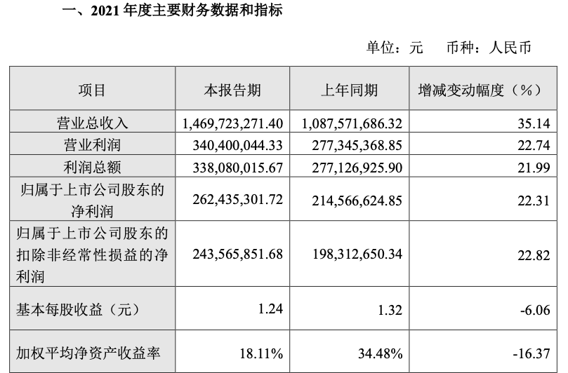 刚刚,浙江李子园食品股份有限公司(下称“李子园”)发布2021年度业绩快报显示,报告期内,公司实现营业收入146972.33万元,同比增长35.14%;实现归属于上市公司股东的净利润26243.53万元,同比增长22.31%;实现归属于上市公司股东的扣除非经常性损益的净利润24356.59万元,同比增长22.82%。