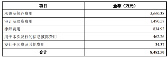 李子园公开发行新股的发行费用(不含税)合计8,482.50万元,其中,承销及保荐费用5,660.38万元。
