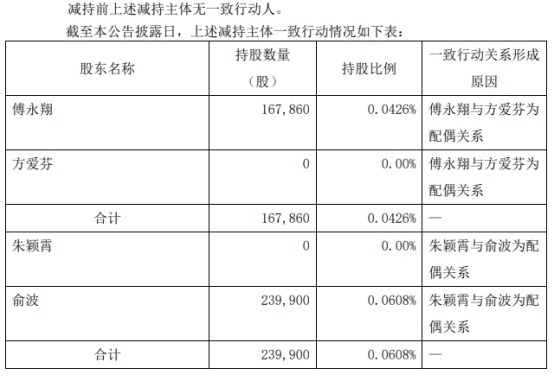 公告显示,傅永翔与方爱芬为配偶关系、朱颖霄与俞波为配偶关系。