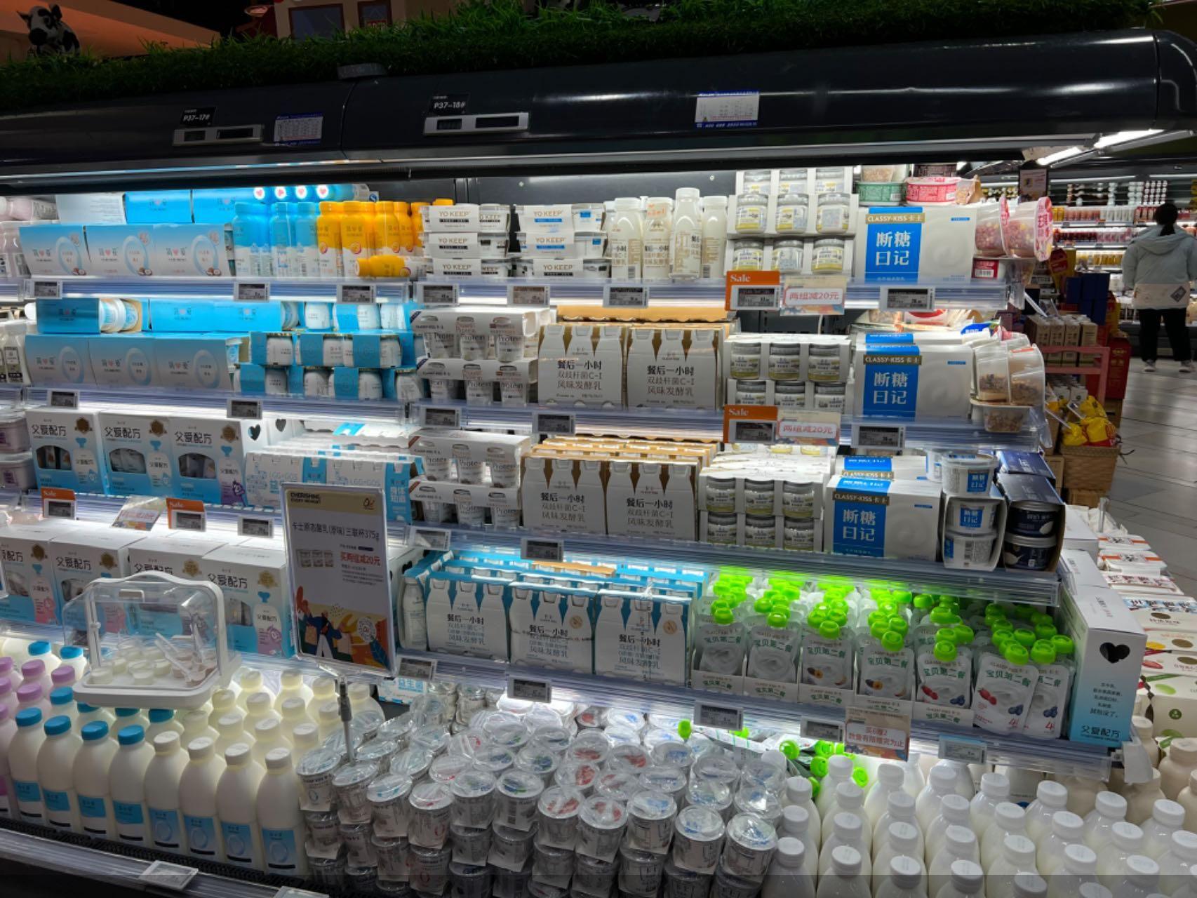 11月中旬,北京商报记者随机走访位于海淀、西城的商超发现,位于五棵松的沃尔玛超市中,伊利制定低温酸奶满30元立减8元,每益添活性乳酸菌系列饮品买一赠一;光明旗下如实原味优酪乳买一赠一;君乐宝旗下纯享酸奶买二赠一,简醇19.5元/5袋。位于远洋山水的物美超市中,原价65元/箱的蒙牛特仑苏纯牛奶,促销价49.9元/箱;原价39.9元/箱的三元宫醇普惠装纯牛奶,促销期间66元/2箱;原价65元/箱的完达山黑沃牧场纯牛奶,促销期间39.9元/箱。位于金融街的Ole精品超市,卡士、简爱等产品也正降价出售。