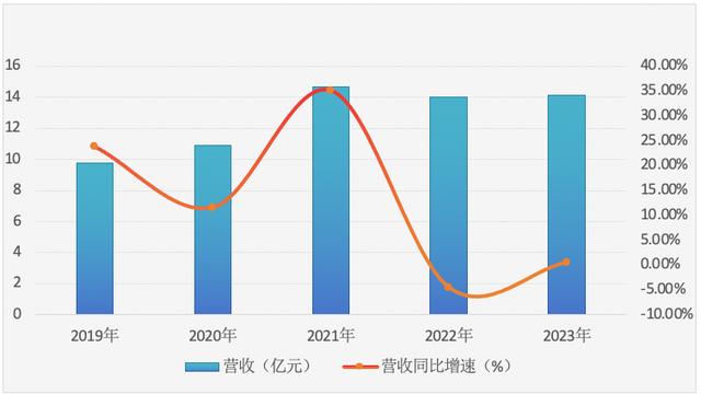 事实上,自2021年营收突破14亿后,李子园营收已连续三年在此线上徘徊。具体而言,2021年公司营收为14.70亿元,2022年为14.04亿元,去年则为14.12亿元。