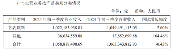 行业人士分析,李子园近年来业绩停滞不前,从行业来看,消费需求有所疲弱,产品同质化严重,价格战内卷加剧。分产品看,今年前三季度,李子园含乳饮料的营业收入为10.22亿元,同比下滑2.6%;同期其他产品收入约3663.46万元,尽管同比增长164.46%,但难以拉动基本盘。