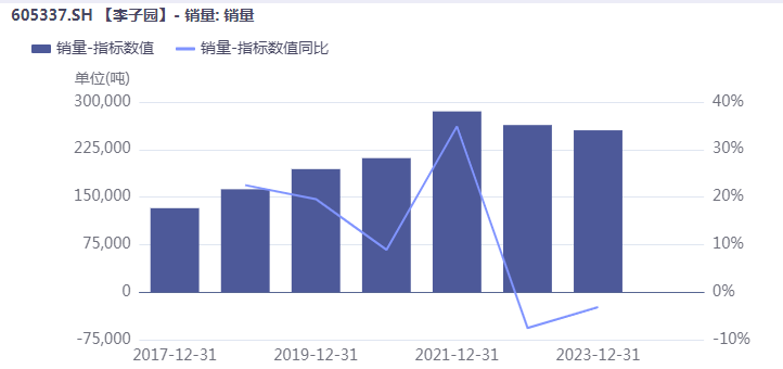 但是,从销量上看,营销对业绩的助推十分有限。2021年-2023年,李子园营业收入一直维持在14亿左右,未能进一步突破。其中,含乳饮料的销量从27.73万吨缩水至25.07万吨。