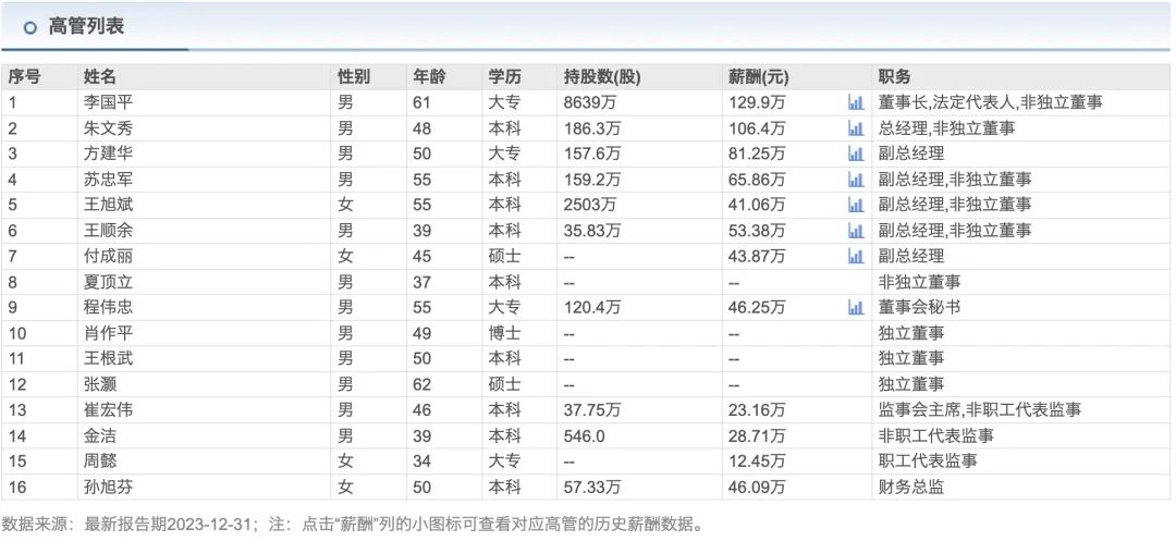 据此计算,今年以来李子园已有7位高管减持,而根据2023年财报,公司共有16位高管,其中持有股份的一共9位。这也意味着,除了董事长李国平及副总经理王旭斌(李国平的妻子),其余持股高管均在今年抛售了公司股份,是此前未曾有过的。