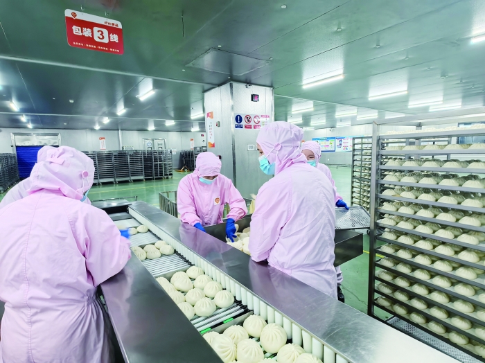 “一条生产线,一分钟可生产75到80个包子。我们用到了馅料技术、低温发酵技术、低温香气面皮技术等,这些都是行业重大突破。”工作人员介绍,从成型线出来的包子,还需要经过醒发、蒸制、冷却、金检、包装等工序,最后入库、分拣,在可视化监控下全程冷链配送到客户。