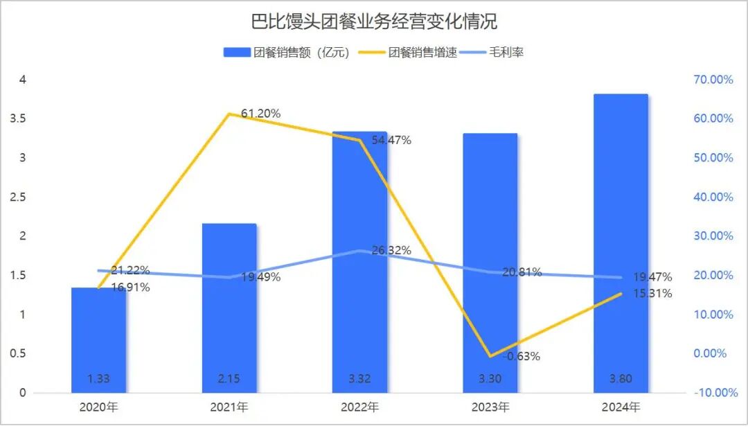 2024年,公司在加盟店和直营营收双双下降之际,团餐营收3.80亿元,同比15.31%,独立支撑起了业绩的增长。