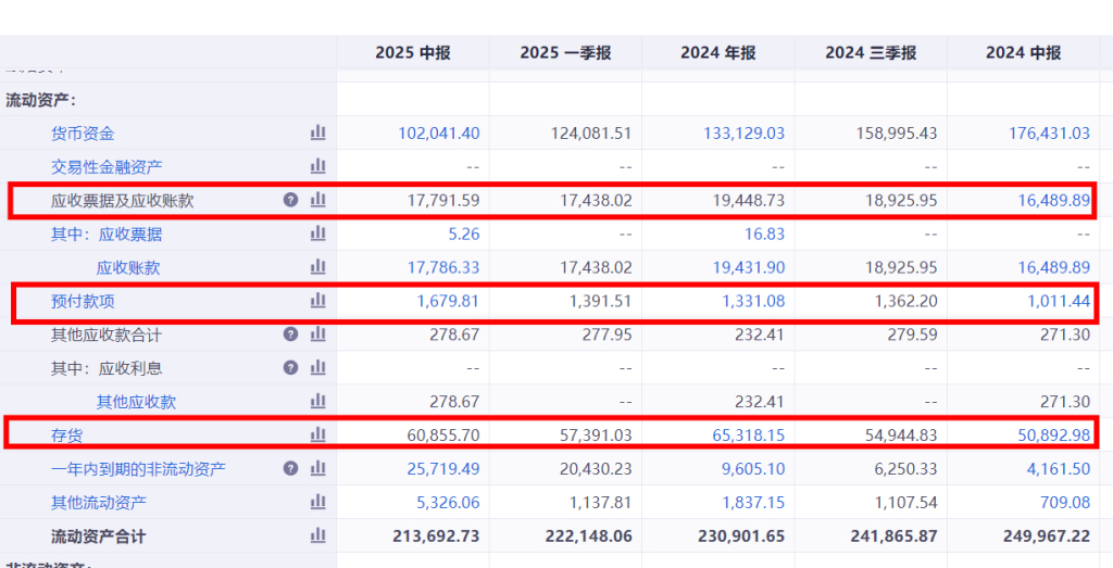 与应收款项压力形成反差的是,应付端的付款刚性进一步加剧了资金周转难题。2025年中应付票据账款为2.55亿元,虽低于2024年中3.93亿元,但与2024年全年2.52亿元基本持平且小幅增长,意味着企业在采购端需按约向供应商支付货款,应付规模仍处高位。一边是销售端被客户拖欠资金、回款变慢,一边是采购端需按时付款、现金流出刚性,这种“左手付出去得多,右手收回来得慢”的局面,形成了资金周转的时间差与金额差双重挤压,让资金在流转中不断被“抽血”,资金链紧张程度持续加剧。