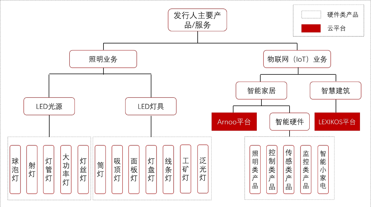 从业务构成来看,当前,立达信的主营业务可分为照明业务和物联网业务两大块,产品涵盖LED 光源和 LED 灯具,以及Arnoo、Lexikos两大智能物联网云平台。