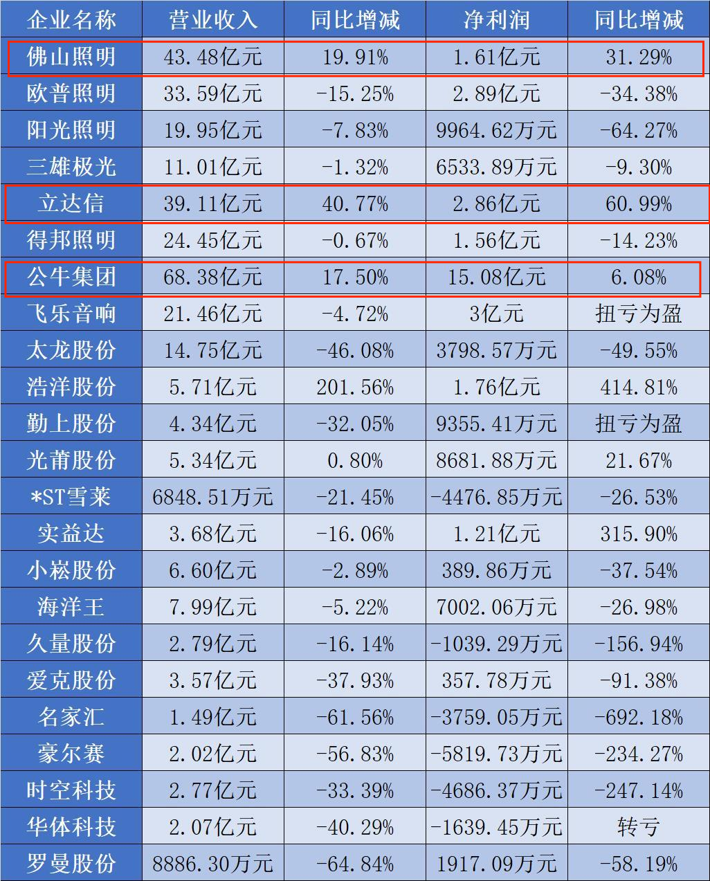 ▲高工LED《23家LED照明上市公司2022半年度报告情况统计》