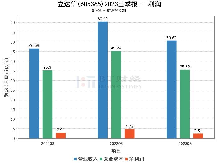 在利润方面,立达信2023年前三季度的营业收入为50.62亿元,相比上年同期的60.43亿元减少了16.23%。营业利润为2.57亿元,相比上年同期的5.36亿元减少了52.05%。净利润为2.51亿元,相比上年同期的4.75亿元减少了47.21%。毛利率为29.63%,相比上年同期的25.06%有所上升。净利率为4.96%,相比上年同期的7.87%有所下降。这些变动主要是由于营业收入较同期减少,同时汇兑收益净额对比同期减少。