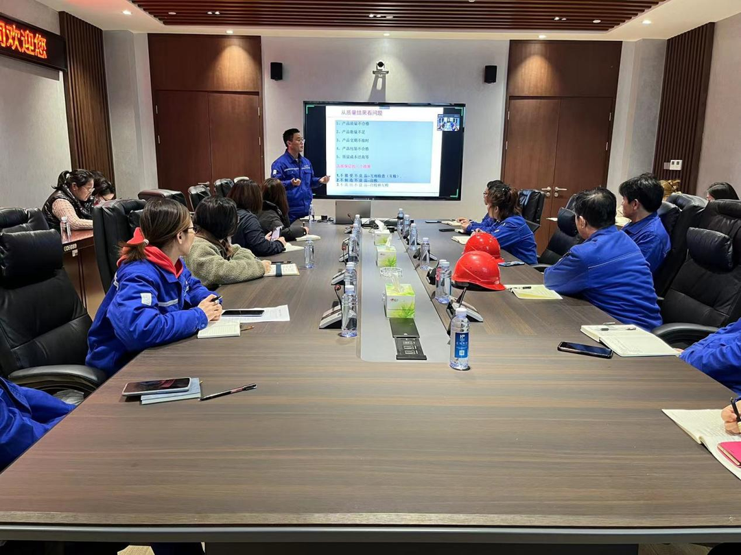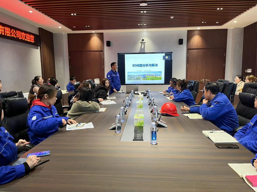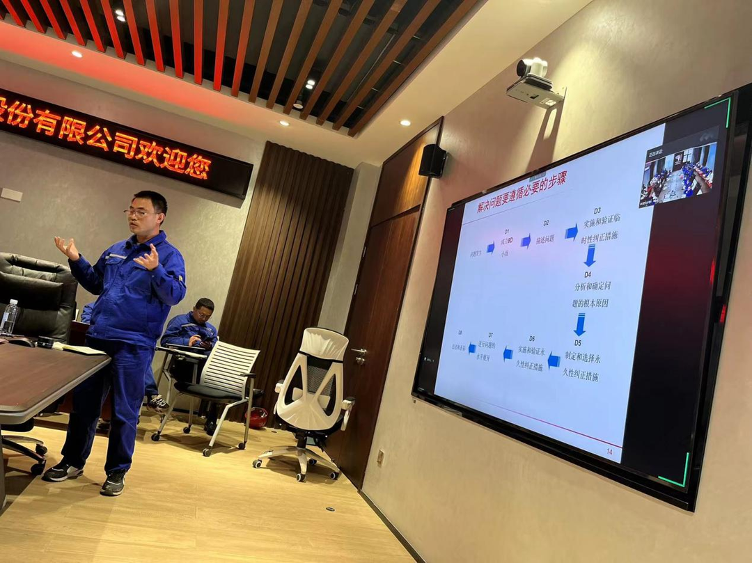 为提高各部门员工分析解决问题的能力,2023年3月25日上午,宏柏新材质量部在企业内部组织了《8D问题分析与解决》课题培训,涉及技术部、生产部、采购部、设备管理部、仓储部、销售部、调度等部门,共计40余人参加。