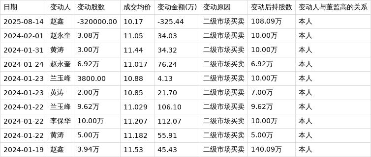上交所公开信息显示,8月14日,蓝天燃气高级管理人员赵鑫在二级市场买卖公司股票,减持股数32.00万股,成交均价10.17元,变动金额325.44万元,变动后持股数为108.09万股。