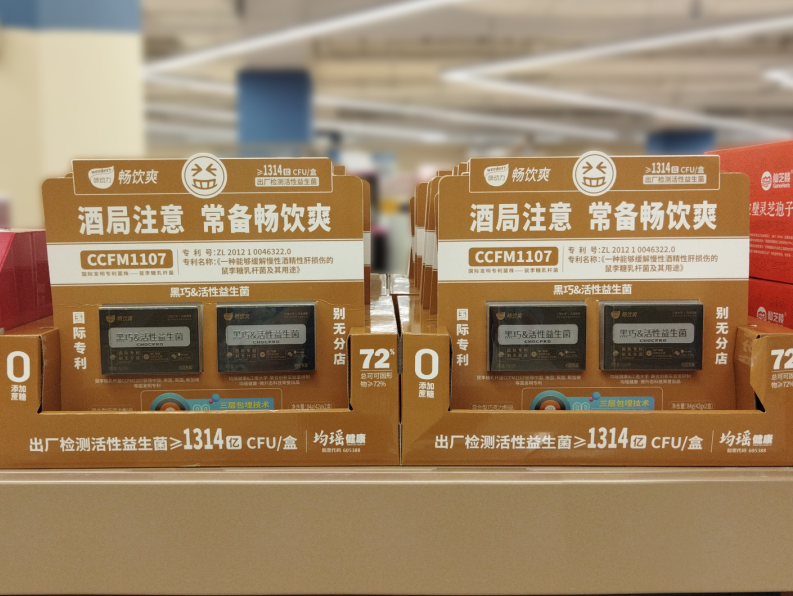 为此,均瑶健康将国家发明专利菌株——CCFM1107鼠李糖乳杆菌,添加到均瑶味动力畅饮爽黑巧&活性益生菌中,安全性高,更适合中国人体质。同时,再复配干酪乳杆菌RS8-5、乳双歧杆菌J605等多种益生菌,让“饭局人”安心畅饮,自在社交。