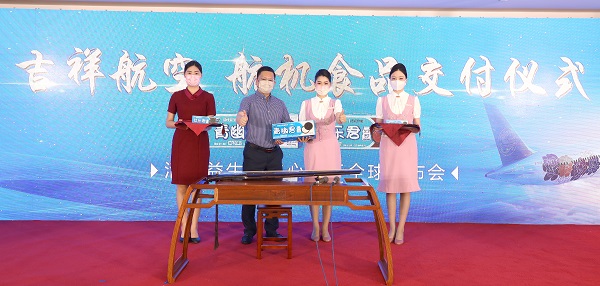 发布会上,自主研发的活性益生菌夹心饼干正式上市。宣布登陆吉祥航空成为航机食品并进行交付。