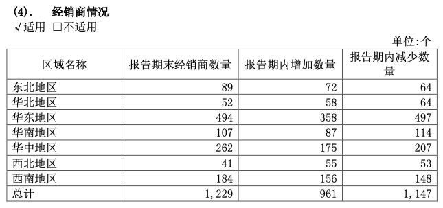 而在传统通路渠道,均瑶健康2022年末的经销商数量为1229家,较2021年末的1415家减少了82家。值得一提的是,均瑶健康的经销商队伍一直颇为“动荡”。其中2021年,均瑶健康增加了869家经销商,但同时减少了890家,汰换率超过了60%,而到2022年,均瑶健康又新增了961家经销商,但同时减少的数量更是高达1147家,汰换率更是高达90%以上。像西北地区等相对空白的区域,均瑶健康仅有41家经销商,其中,有55家为新增,同时减少了53家,换而言之,基本上当地经销商全部“大换血”。