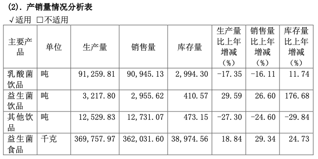 作为均瑶健康积极打造的“第二增长极”,旗下益生菌饮品和益生菌食品表现优秀,分别实现营收3005.85万元和5075.57万元,虽然增速分别达到了41.58%和43.24%,毛利率也分别达到40.06%和50.03%,均瑶健康表示主要系公司大力发展益生菌饮品、益生菌食品,导致该板块收入增幅明显,其中,益生菌饮品销量同比增长26.6%至2955.62吨,益生菌食品销量同比增长29.34%至362.03吨。但由于该板块仍然处于起步阶段,占比并不高,并未能帮助均瑶健康在整体营收层面实现高增长。
