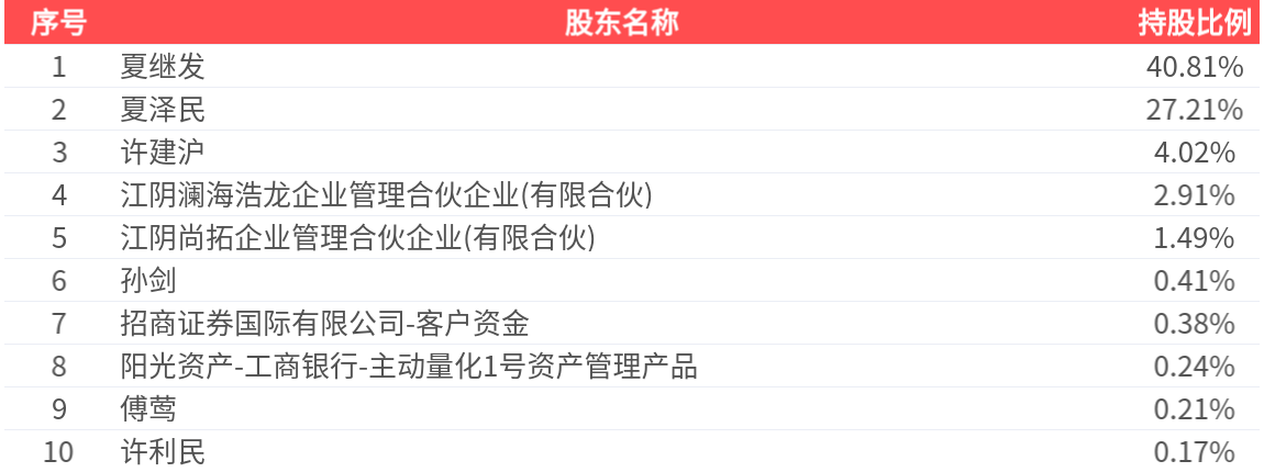 公司股东户数为1.02万户,前十大股东持股数量为1.12亿股,占总股本比例为77.85%,前十大股东持股情况如下:
