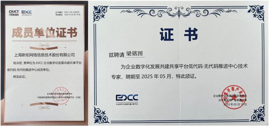 近日,由中国信息通信研究院、中国通信标准化协会主办,中国通信标准化协会云计算标准和开源推进委员会承办,企业数字化发展共建共享平台支持的“2023低代码·无代码产业大会”在北京举办。新炬网络作为EDCC企业数字化发展共建共享平台低代码·无代码推进中心的成员单位于会上亮相。同时,新炬网络首席架构师梁铭图受聘为低代码·无代码推进中心技术专家,今后将携手产学研用各界成员伙伴,积极参与围绕低代码·无代码开展的技术探索、标准研究、评估测试、行业应用和推广等工作。