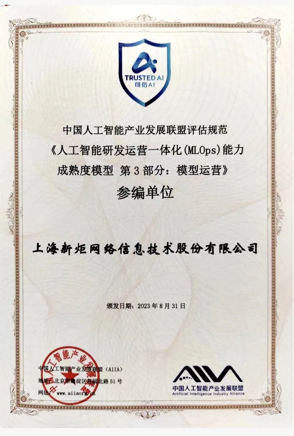 此外,由新炬网络参与编制的业内首个中国人工智能产业发展联盟评估规范《人工智能研发运营一体化(MLOps)能力成熟度模型第3部分:模型运营》(征求意见稿)也于“2023大模型工程化论坛”正式发布。
