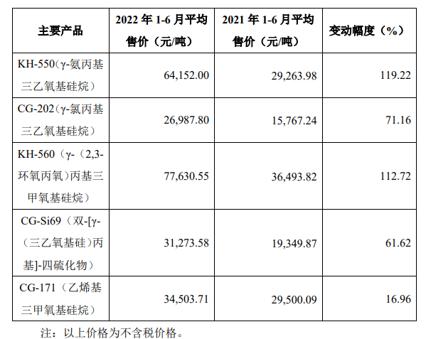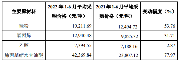 据慧正资讯了解,2022年上半年,功能性硅烷的需求延续了景气态势,产品平均价格高于去年同期,晨光新材的生产和销售情况良好,因此在2022年上半年出现了较大幅度的业绩增长,特别是,受光伏行业需求拉动,三氯氢硅价格在2022年上半年出现了价格明显上升的情形,因为三氯氢硅是晨光新材产品的基础原材料,三氯氢硅价格的上升一定程度上对功能性硅烷的价格也形成了一定支撑作用。功能性硅烷在涂料、复合材料等领域的需求比较稳定,在气凝胶领域的需求快速增长;在建筑行业应用较多的室温硫化硅橡胶领域,景气度有所下降;受疫情影响,部分下游厂家的开工率不足,物流一定程度上也受到影响。