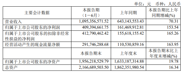 国内功能性硅烷供应商晨光新材发布了上半年经营报告。报告显示,晨光新材上半年实现营业收入10.95亿元,同比增长70.31%;归属上市公司股东净利润为4.09亿元,同比增长153.54%。收入的大幅增长主要是销售单价提升和销售量增加所致,净利润增长则主要来自产品综合毛利率的增长,本期内晨光新材的产品毛利率为48.22%,去年同期为34.85%。