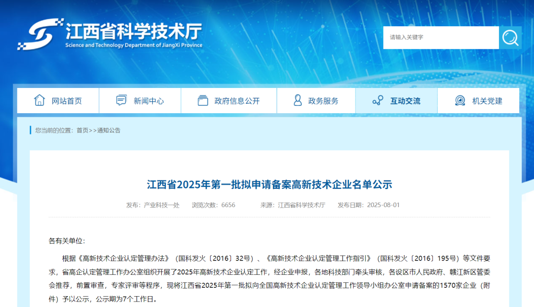 8月1日,江西省科技厅公示江西省2025年第一批拟申请备案高新技术企业名单,中国玻璃纤维工业协会理事单位江西晨光新材料股份有限公司、会员单位元源新材料有限公司入选。
