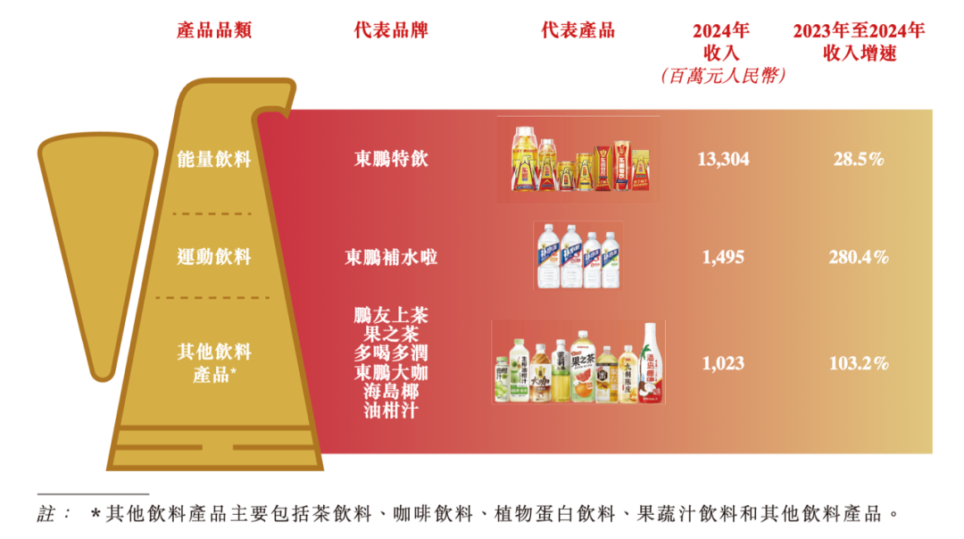 相较之下,运动饮料板块则是公司近年最引人注目的增长点。官方数据显示,东鹏饮料2023年初推出的“东鹏补水啦”首年收入约3.93亿元,2024年飙升至14.95亿元,年增速高达280%。这一“爆发式”的增长逻辑,主要来自国内健身与休闲体育市场的持续活跃,以及消费者对运动场景补水需求的意识提升。