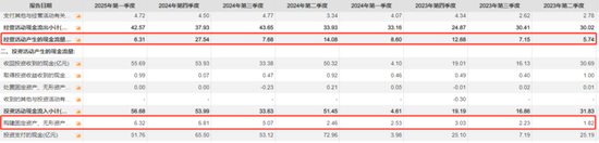 这一数据又进一步引起两个变化,一个是净现比直接创新低,2025年一季度降至0.64。而自2021年上市以来,只有2022年有两个季度略小于1,其余季度都是明显大于1。