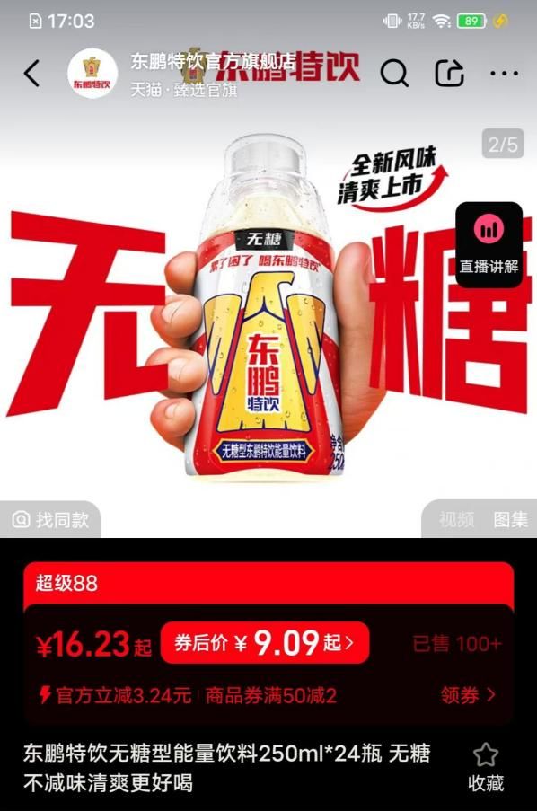 2025年7月,东鹏饮料在天猫官方旗舰店悄然上架了一款“无糖型东鹏特饮”,这是东鹏时隔四年再度发力无糖饮料领域。