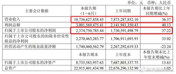 而到了2025年,增长势头愈发迅猛——仅上半年就实现营收107.37亿元,同比增长36.37%;净利润23.75亿元,同比增幅达到37.22%。其中,上半年营收首次突破百亿元大关。