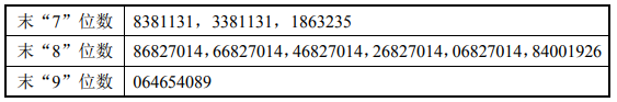 中签号码如下: