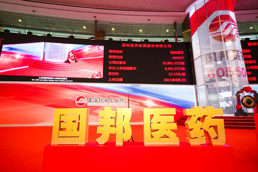 2021年8月2日,杭实资管重点投资原料药龙头企业国邦医药集团股份有限公司(股票简称:国邦医药,股票代码:605507)成功完成上交所主板上市,公司发行价格32.57元/股,当日上涨44%,收盘价46.90元/股,市值262亿元。