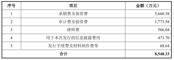 国邦医药本次上市发行费用(不含税)为8540.33万元,其中国泰君安证券股份有限公司获得承销费及保荐费5660.38万元,立信会计师事务所(特殊普通合伙)获得审计费及验资费1773.58万元,国浩律师(杭州)事务所获得律师费566.04万元。